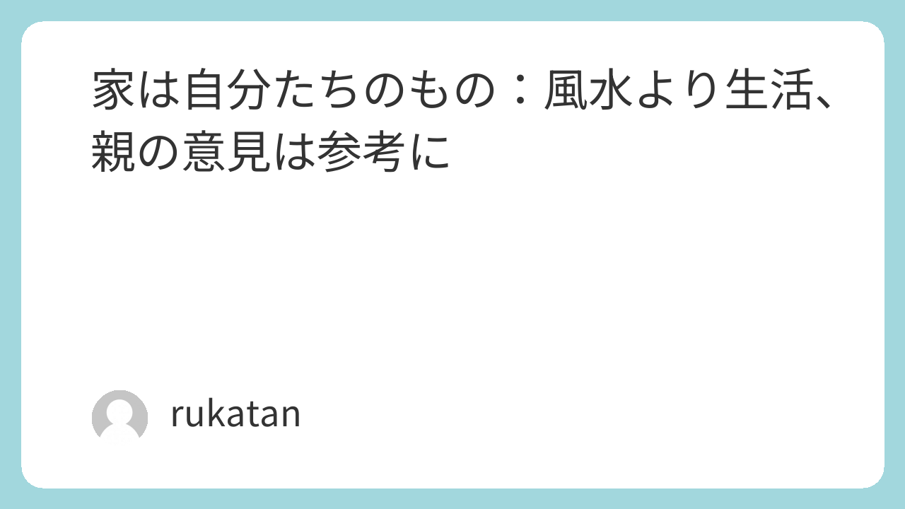 この体験から学んだのは、家族の生活を最優先に考え、親の意見や風水はあくまで参考程度に留めることが重要だということです。